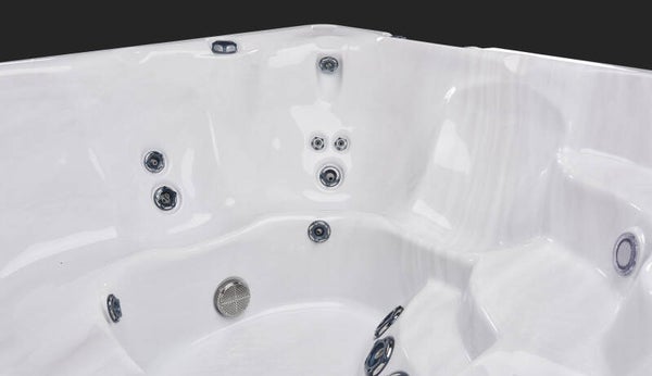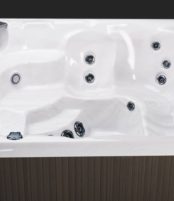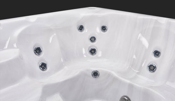 Sièges 6 + 1 siège de refroidissementJets Flexjets offrant jusqu'à 102 jets personnalisables avec 23 sorties d'eauDimensions 89 x 89 x 38 Po | 226 x 226 x 97 CmOptions de construction Hybrid3 / LEEPPoids vide / rempli 725 livres / 329 kilogrammes / 4212 livres / 1911 kilogrammesCapacité d'eau 418 gallons US / 1582 Litres / 348 Gallons Impériaux