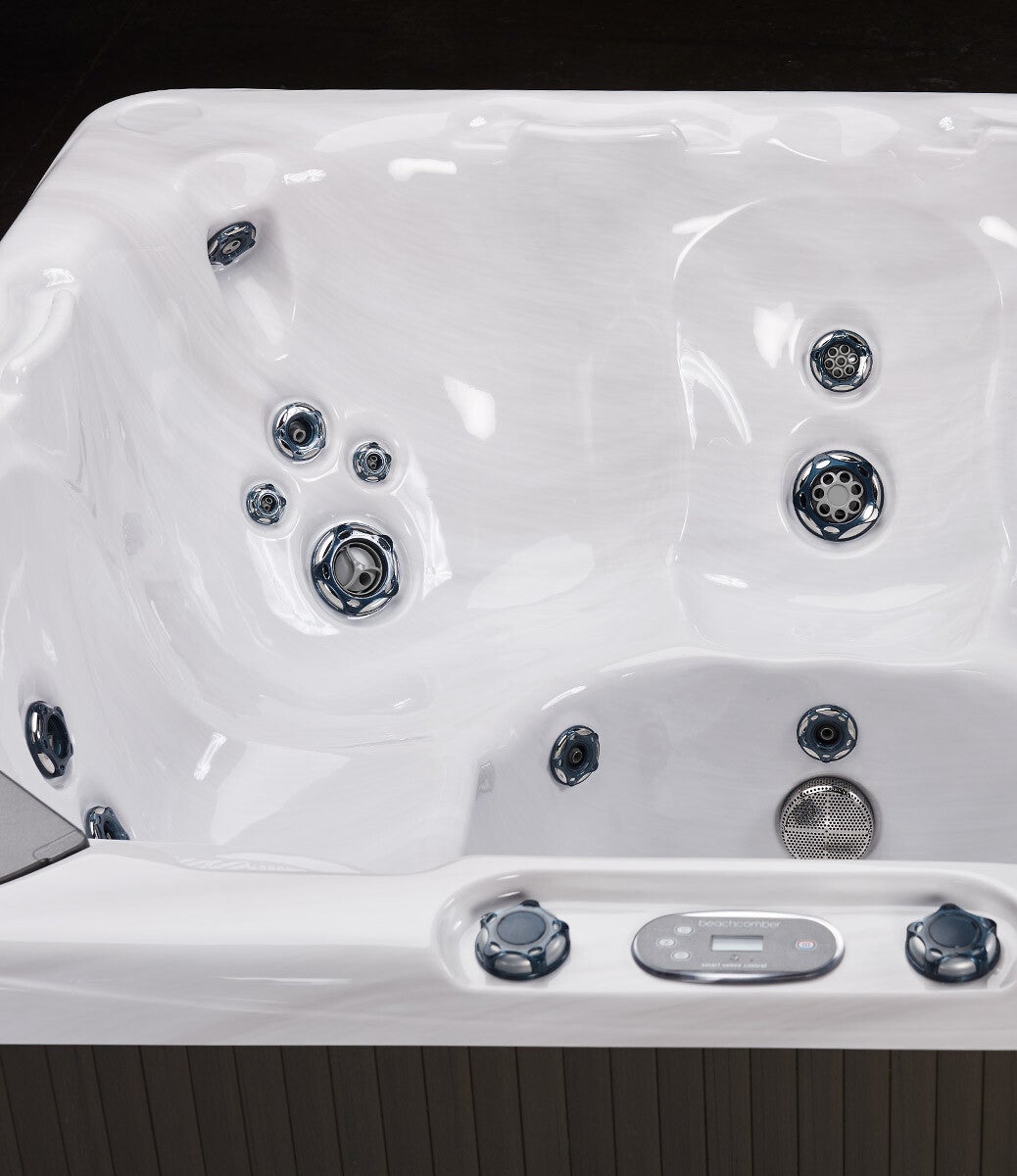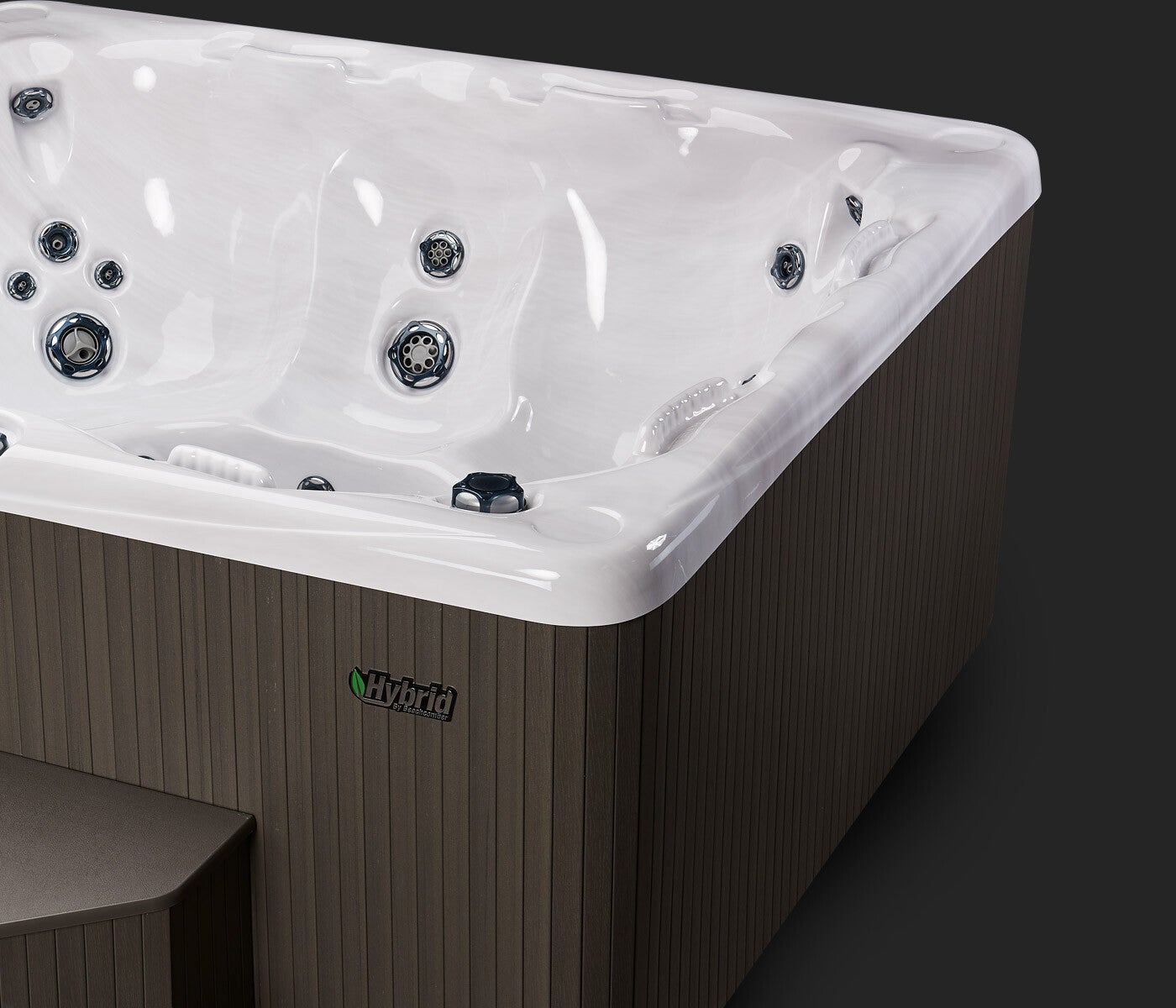 Sièges 6Jets Flexjets offrant jusqu'à 112 jets personnalisables avec 28 sorties d'eauDimensions 80 x 88 x 38 Po | 203 x 224 x 97 CmOptions de construction Hybrid3 / LEEPPoids vide / rempli 650 livres / 295 kilogrammes / 3670 livres / 1665 kilogrammesCapacité d'eau 362 gallons US / 1370 Litres / 301 Gallons Impériaux